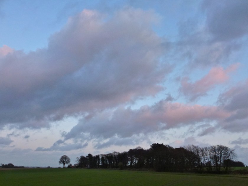 I snuck out again just before sunset feeling a bit grim, but the fresh air and exercise soon picked me up. I headed up Brownhills and onto the canal, heading towards Wharf Lane. I was wondering if there would be much damage evident from the high winds, but thankfully, there was none. Stopping to survey the favoured view of Home Farm at Sandhills, I noted that the lone tree that stands where Brawn’s wind pump used to be is still standing. That’s a relief; I tell the seasons by that tree. It’s a fine specimen.