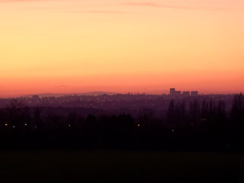 The view downhill to Walsall Wood, Walsall and the wider Black Country is always stunning, and it’s a good while since I saw it in a good sunset. It was worth it.