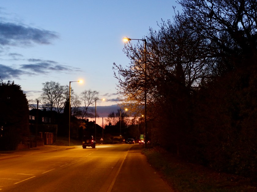 Sunday 6th February 2022 – Returning from Lichfield on an errand, I caught a good sunset – not a brightly coloured one, although those always occur this time of year sooner or later – but the sort of dramatic, moody, muted skyline that bristles with what Simon Jeffes might have termed surface tension.
