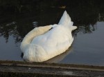 I couldn’t knowingly leave this swan to a similar fate, so after taking a few pictures, I gently woke it by speaking. I was greeted by wing-flapping, honking and hissing, and the white bird swam away from me.