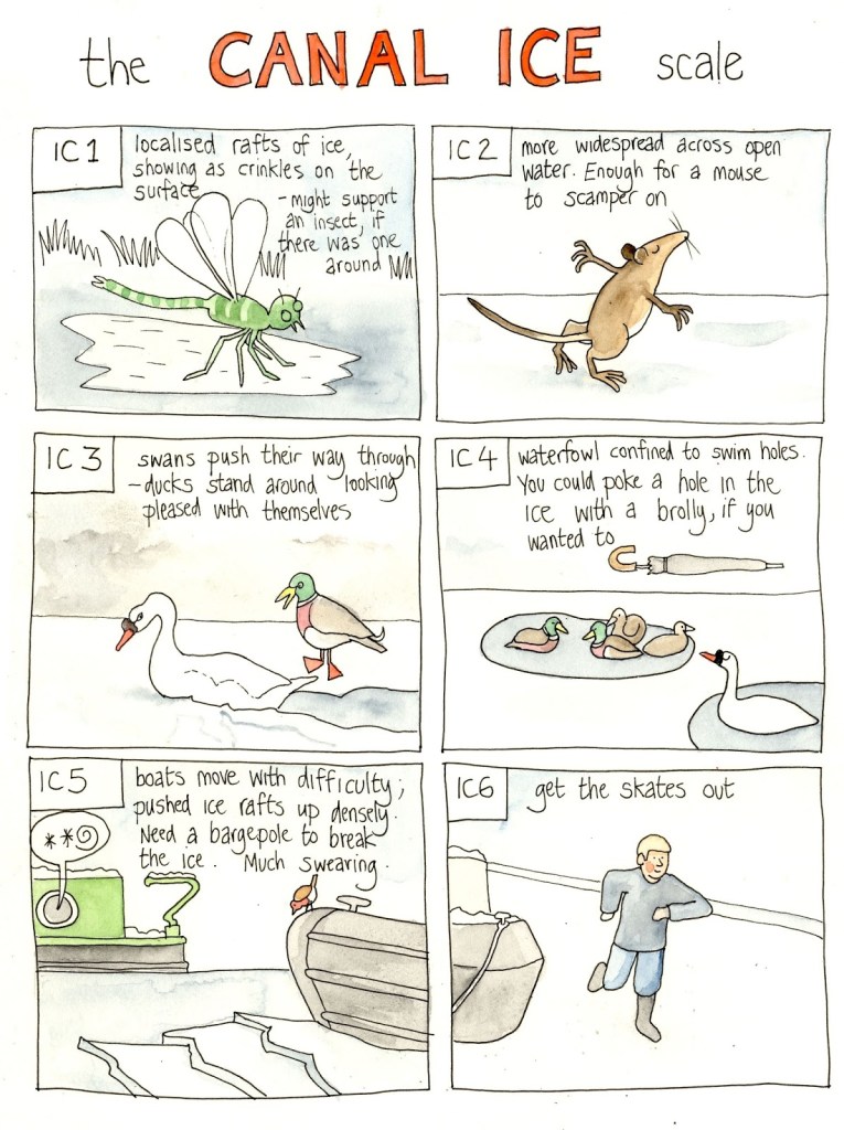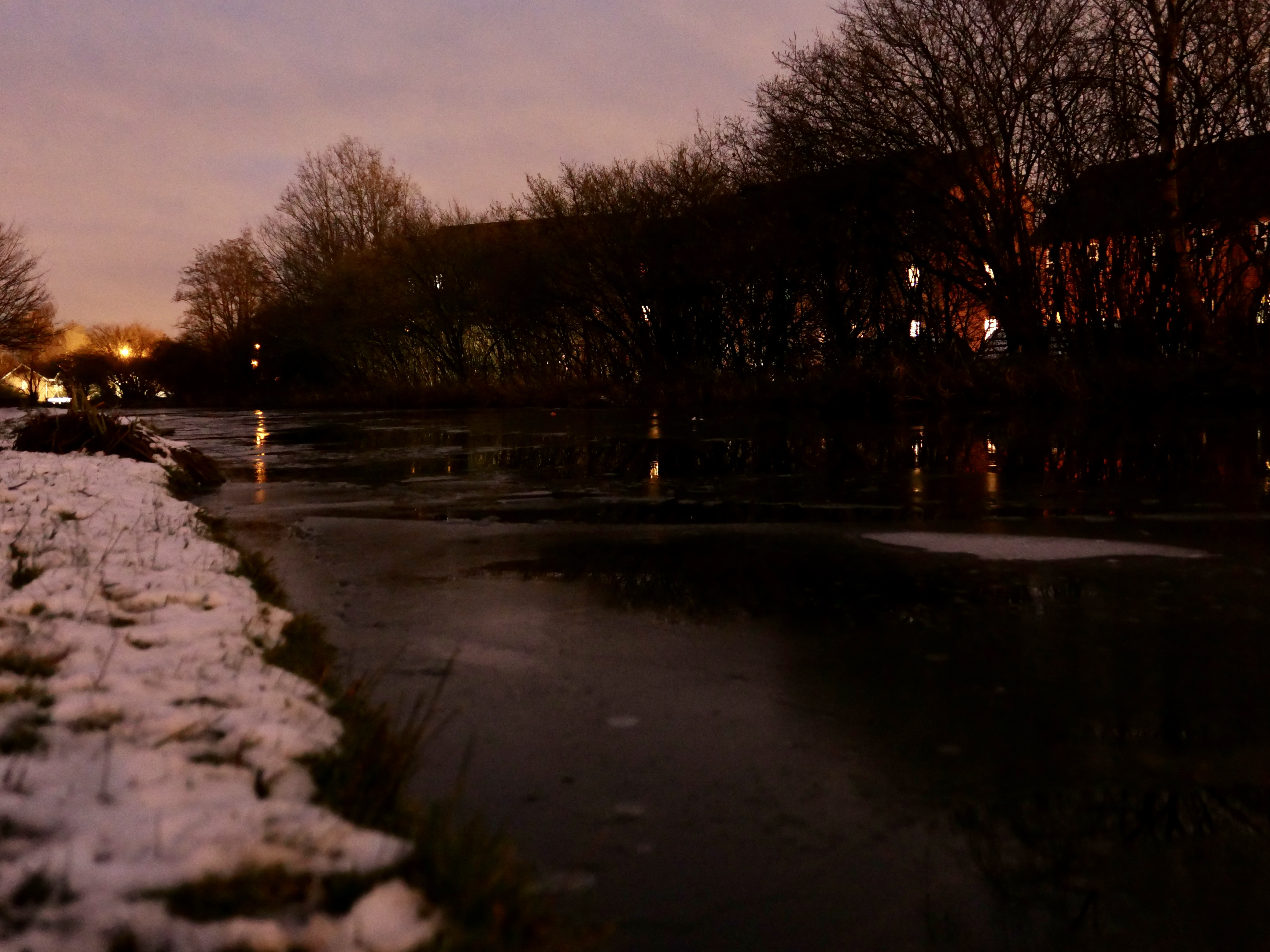 The canal is partially frozen – about a IC2 on the Dra Marland canal scale.