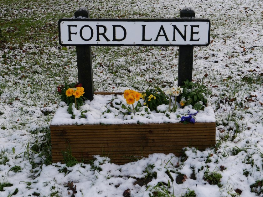 Tuesday February 9th 2021 –  It was very, very cold. There was periodic, not really settling snow but continual sub zero temperatures, and hedgerows near puddles around the area like this one in Green Lane had become ice grottos.