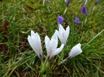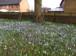 Despite the terrible light and encroaching dusk, I think it can be seen that the usual carpet of purple and white crocuses in the cemetery is just coming into flower.