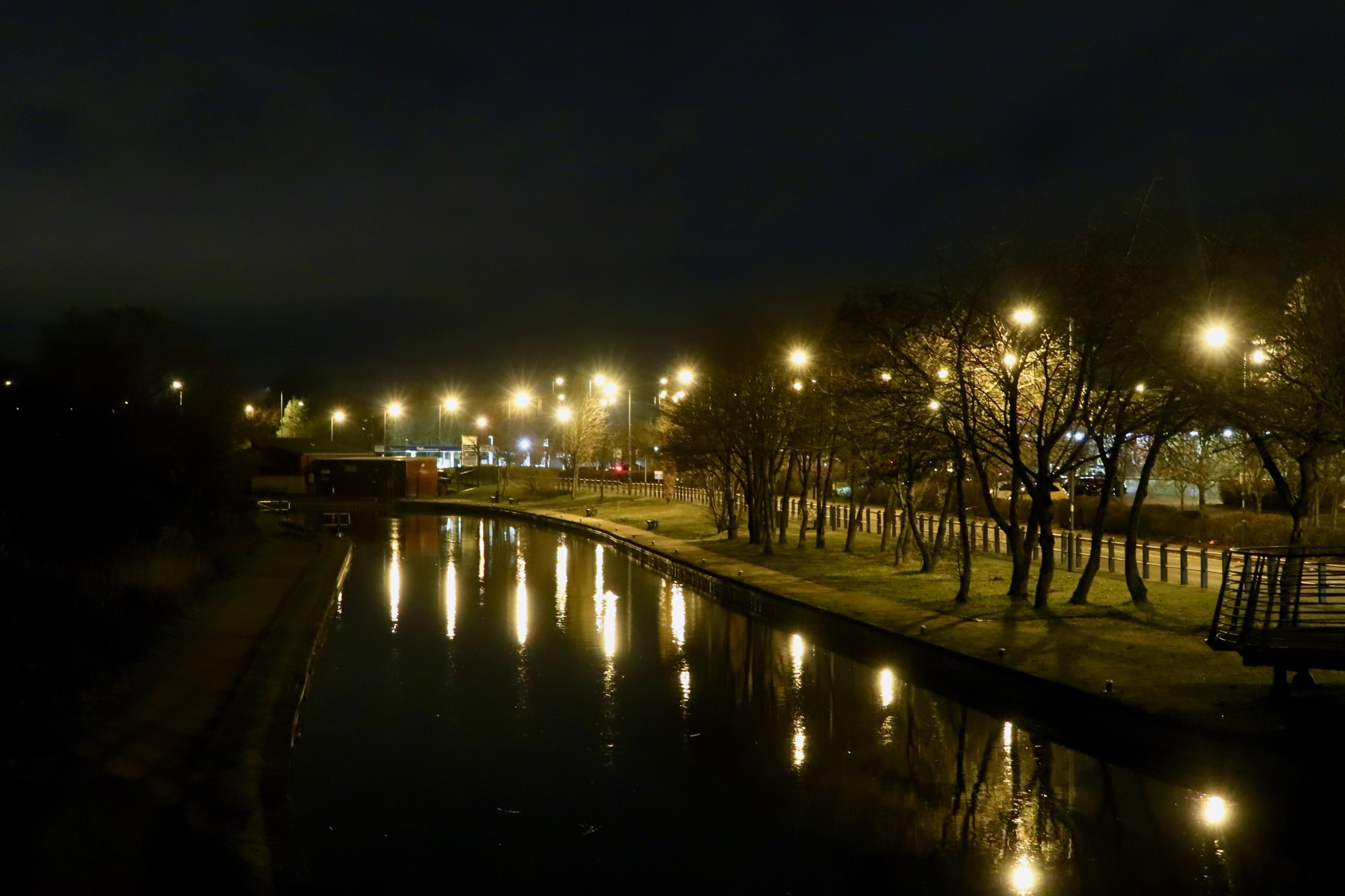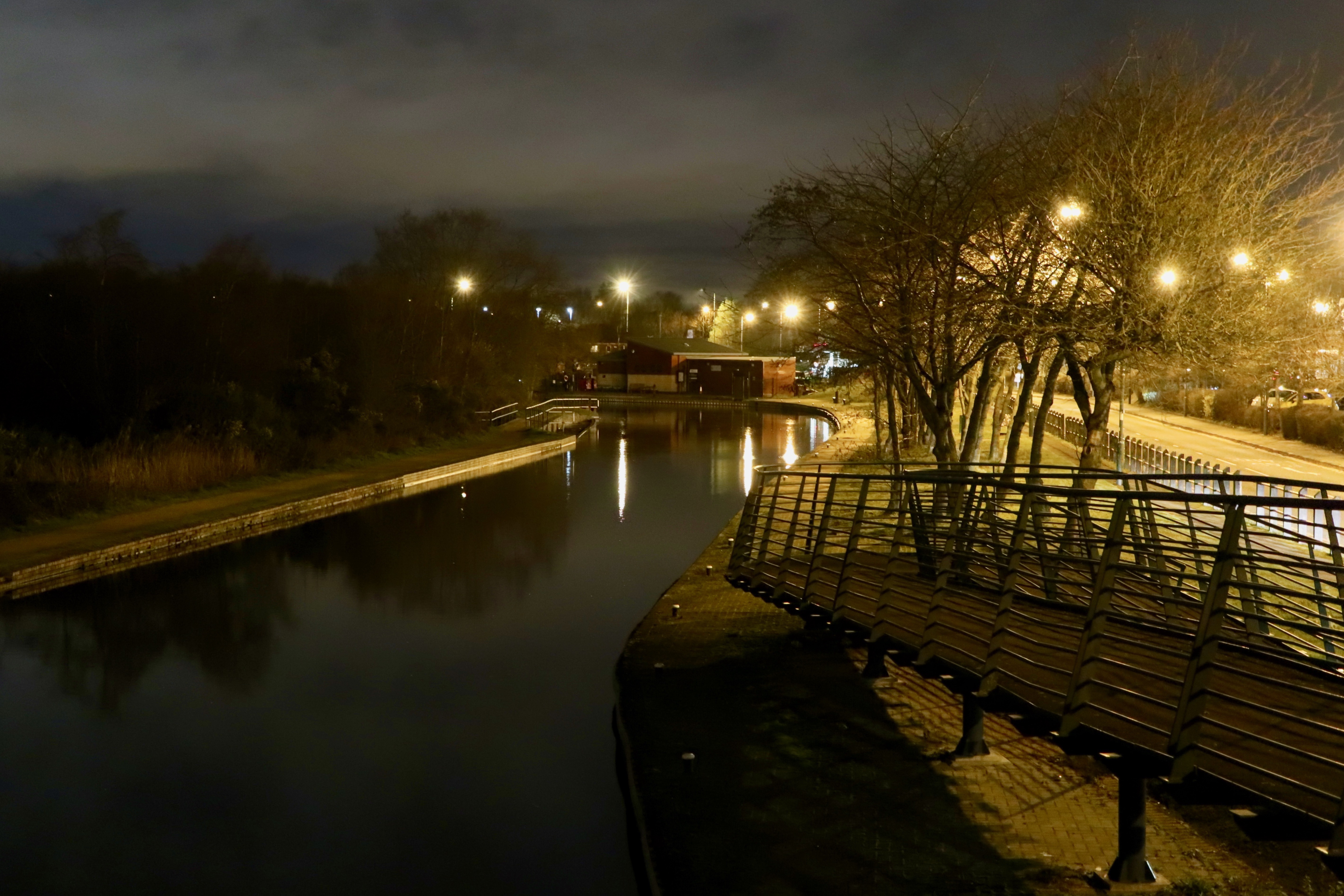 Dashing about still at dusk after popping to friends, I crossed the Silver Street bridge in Brownhills, another night-time favourite for the lights on the canal.