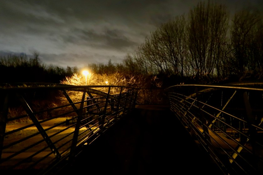 Wednesday March 3rd 2021 – Returning from work again in the middle evening, it was a much clearer night as I crossed the Pier Street pedestrian bridge back into Brownhills, a traditional homecoming when the canal towpaths are not too wet.