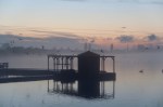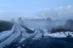 As I travelled, my headlight started picking up swirls of mist over the water, and by the time I was near the new pond and Clayhanger Bridge, there were appreciable clouds of vapour rising and tumbling above the water, but only in short stretches, whereas others were clear.