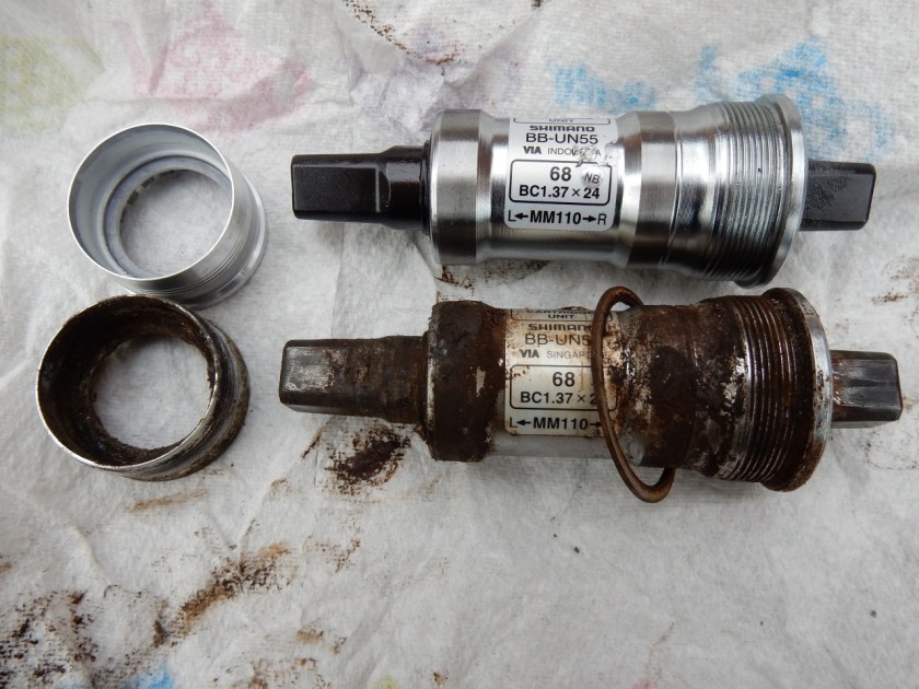 The bottom bracket is the spindle that the cranks mount on through the bottom of the frame, which spins freely allowing your pedals to rotate. As a mechanical component, the bottom bracket experiences the worst abuse – epicentric, unbalanced point loading, muck, water and corrosion. My bottom brackets take my full weight, plus that of the bike and load. They work hard.