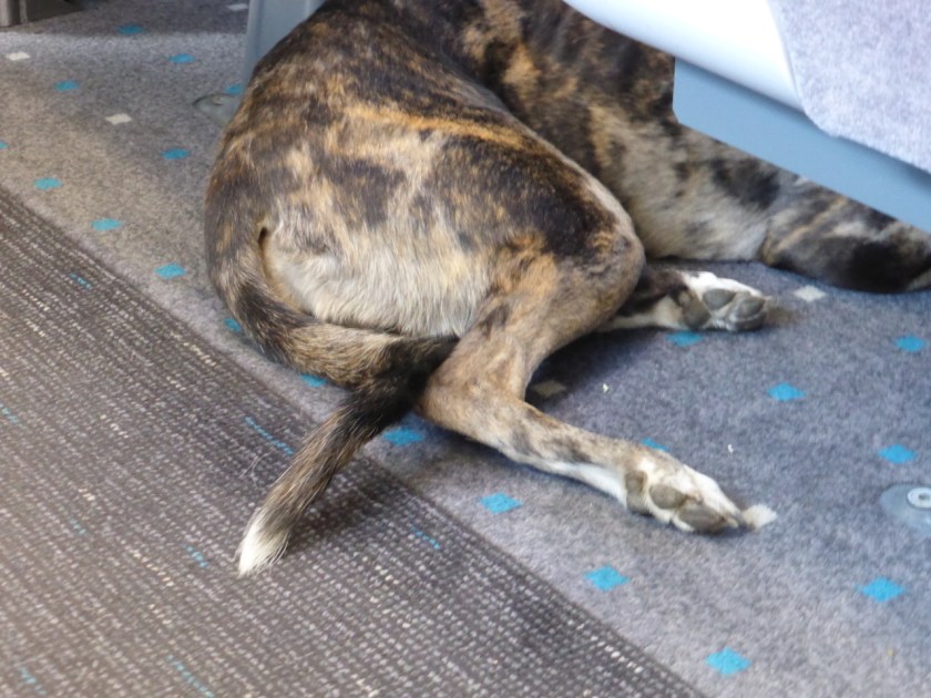 June 6th – When you’re three months old, trains are so very boring. You just want to get out and play on such a fine day, but instead you’re in a noisy, wobbly tin box, held on a tight lead listening to the humans chatter. Nothing for it but to snooze and wait. Hopefully, there’ll be some fun and games at the end of it…