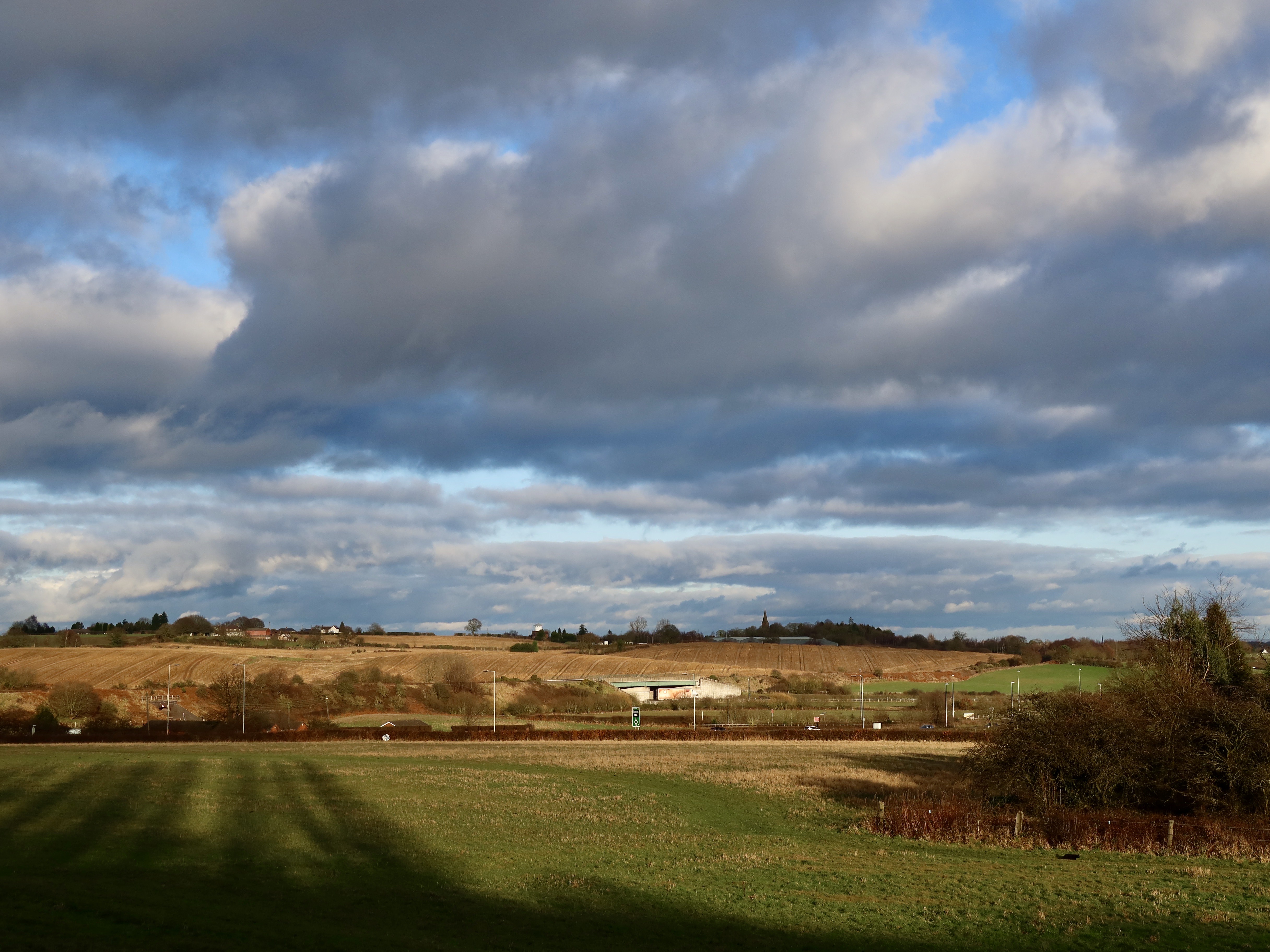 I stopped at the top of Pipe Hill; to record a darkening Lichfield, the sprawl of which has slowly edged towards Pipe Hill in the four decades I’ve cycled here. Where there is now a large Waitrose supermarket, there was once fields, a small hospital and a cricket ground. The new houses are now spreading up Deans Slade towards Aldershawe and Harehurst Hill.