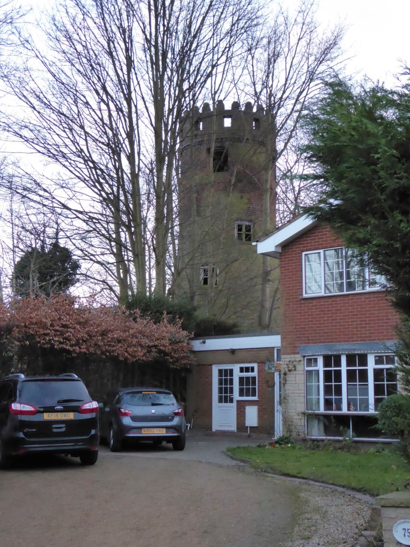 You can’t actually get close to it – it’s in the garden of a remarkably ornate, somewhat architecturally eccentric house, and is only really visible in winter when there are no leaves on the trees. I’m told the owners don’t welcome enquiries, and the property is shut behind very tall, secure gates. Anybody have any more information?